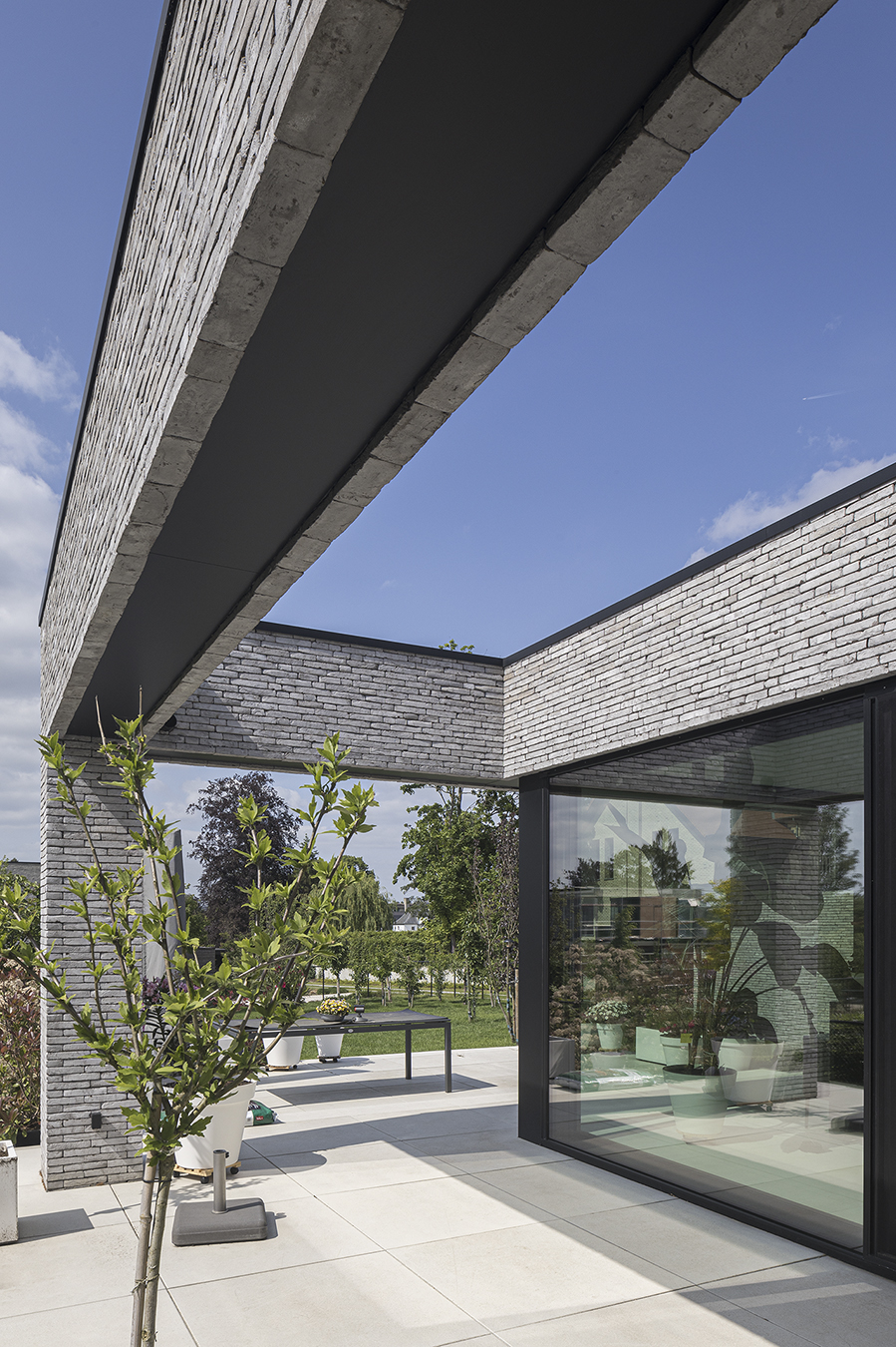 Voor Monica en Patrick mocht het iets minder alledaags zijn. En dat vonden wij ook wel eens leuk. Onze architecte heeft zich dan ook van haar beste kant laten zien, getuige o.a. mooie overkragingen, een glazen loopvloer, glas tot tegen de dakrand en de zwevende balken in metselwerk boven het terras.