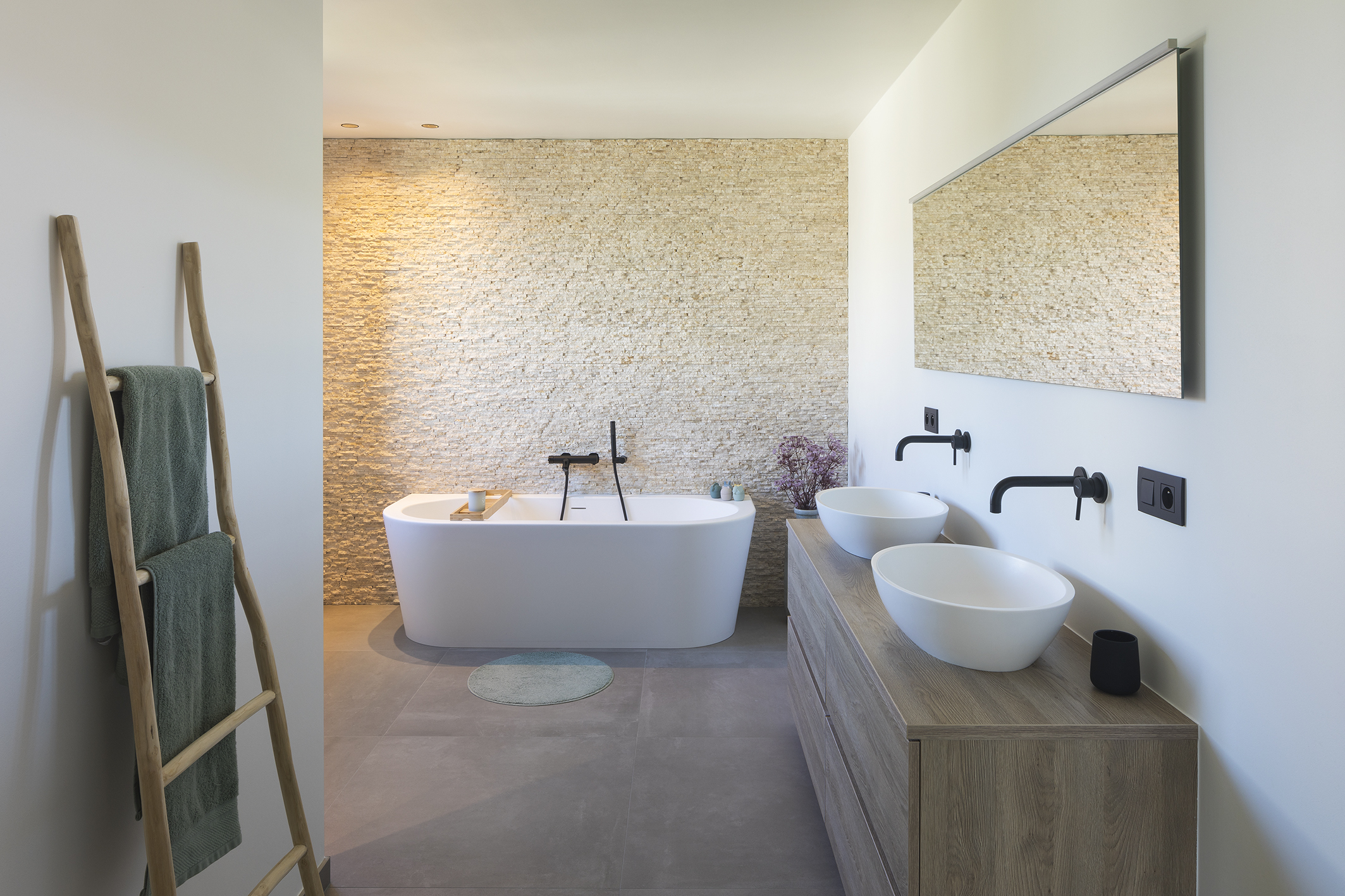 Maar ook de afwerking mag er zijn. Wouter en Nathalie kozen heel mooie materialen, die wij met met veel aandacht en zorg hebben geplaatst en het resultaat mag er dan ook zijn.