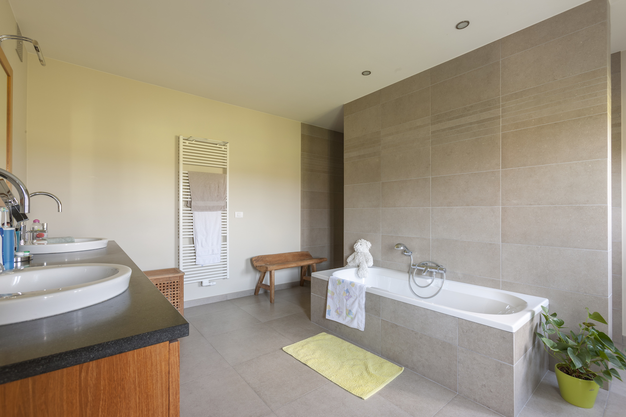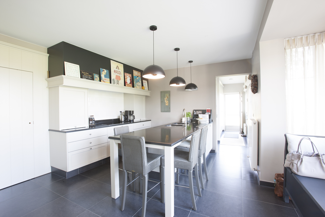 Voor de gevel kozen we de Oud Kempische stenen van Terca. De donkere dakpannen zijn de Pottelbergse 714 Vielli. Achter deze woning staat het bijgebouw, dat dankzij het rieten dak een gezellige toets geeft aan het overdekt terras. Na de bouwperiode betrokken onze tevreden klanten hun thuis, dat tot in de puntjes werd afgewerkt.